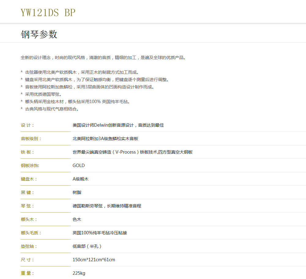 商品名称:YOUNG CHANG英昌 韩国品牌 YW121DS BP经典款高端立式钢琴